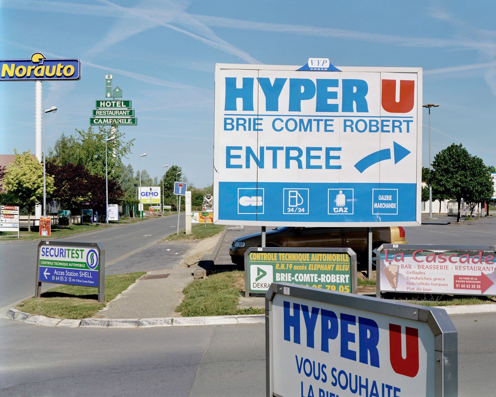 First around Paris. Along the eastern side of the city the outgoing highways are interconnected by a ring road, the Route Francilienne. A part of the Francilienne runs through an old produce-growing area. There one comes across country estates and former experimental farms of the pre-revolutionary aristocracy. Appearing at the junctions of the outbound highways and the Francilienne are large supermarkets and the French answer to American fast-food imperialism: Buffalo Grill. Main street of the historic village is now the entrance to the shopping mall: the former center has become the periphery.