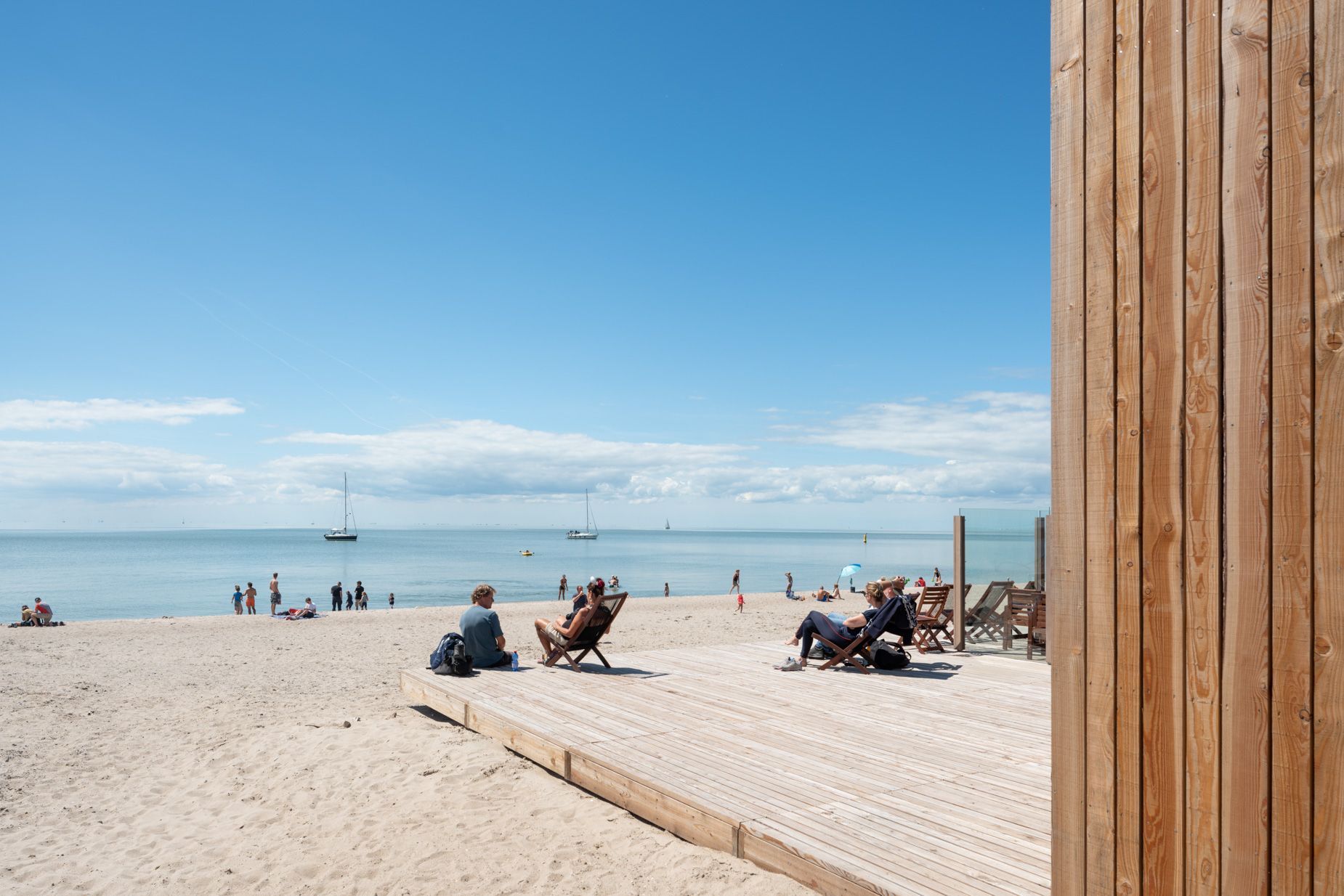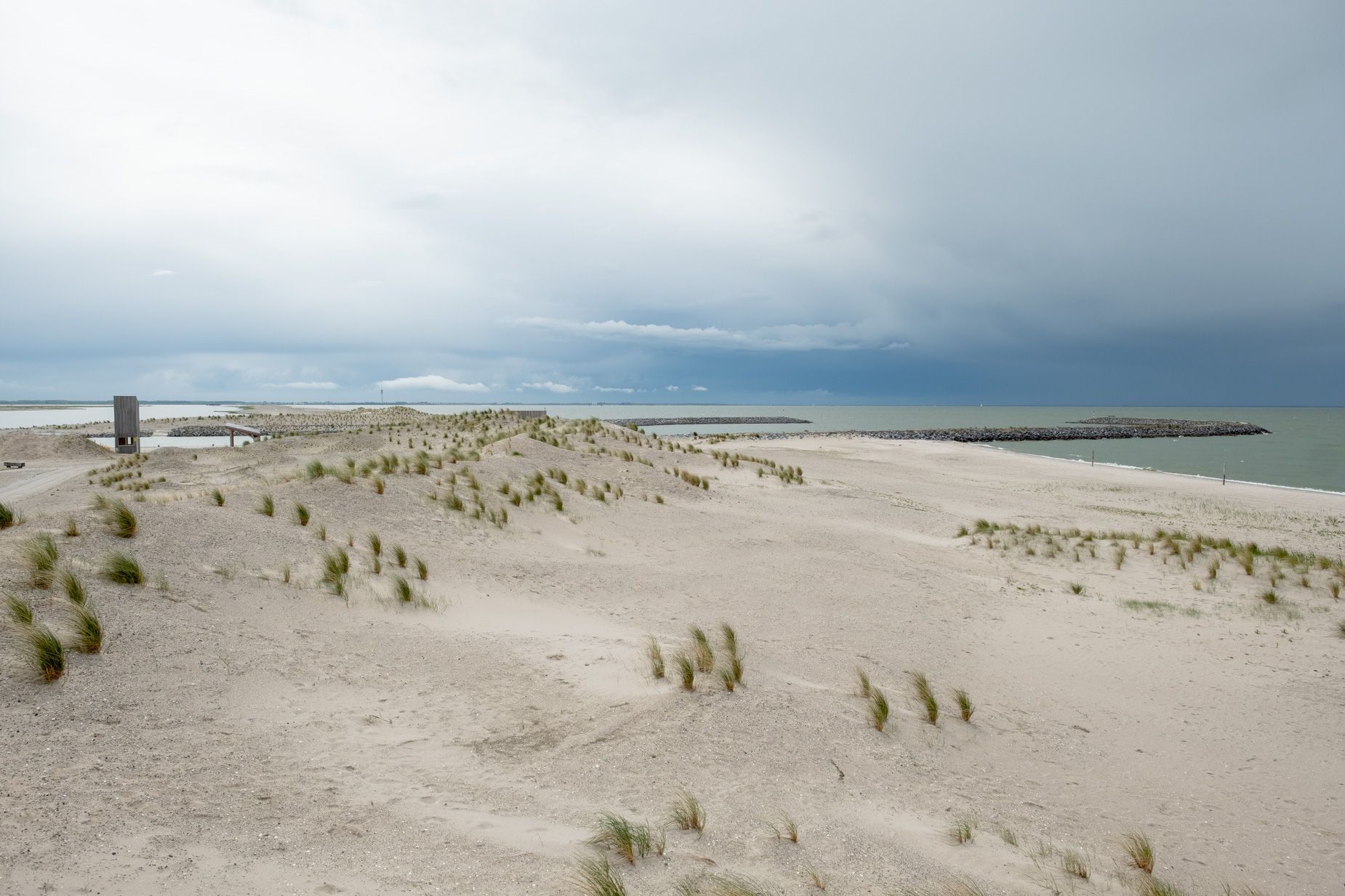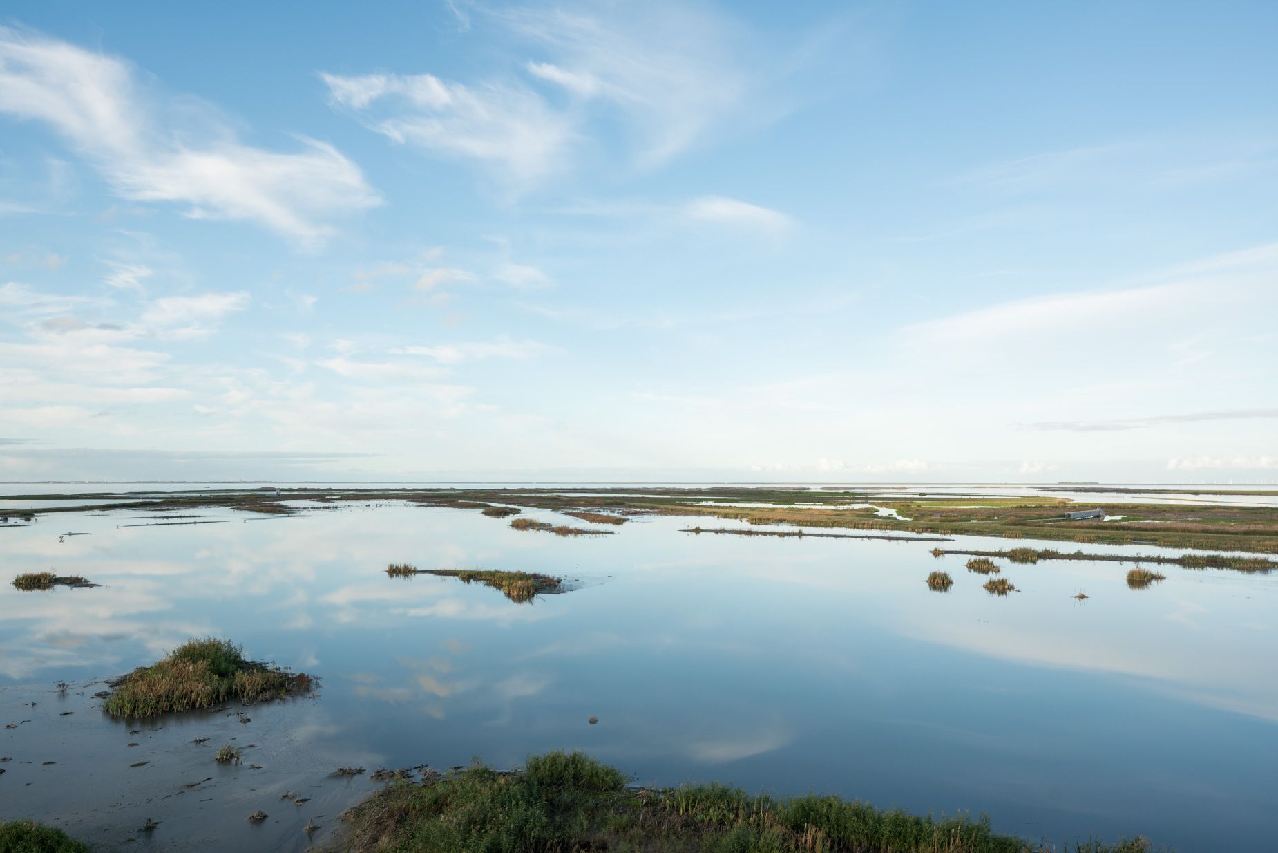 | Ik fotografeer graag een nieuwbouwwijk na de oplevering wanneer de eerste bewoners hun nieuwe biotoop veroveren. Alles is fris en fruitig maar als het waait stuift het bouwzand nog in je ogen: de ontwerpers en bouwers hebben hun hielen gelicht maar de blauwdruk is nog voelbaar. Dat is ook de fase geweest waarin ik tussen 2019 en 2023 gefotografeerd heb op Marker Wadden. Het is nu, niet lang na de oplevering, nog mogelijk om onder de motorkap te kijken. Niet overal zijn de sporen van de landmakers uitgewist door de natuur. De kleur van de boomsoort waarmee de gebouwen zijn opgetrokken is hier en daar nog zichtbaar voordat het door het zonlicht vergrijst. Net als de piketpaaltjes en de sporen van de machines die een handje hielpen bij het natuurmaken. De natuur mag zijn gang gaan maar wel binnen vastgestelde parameters.